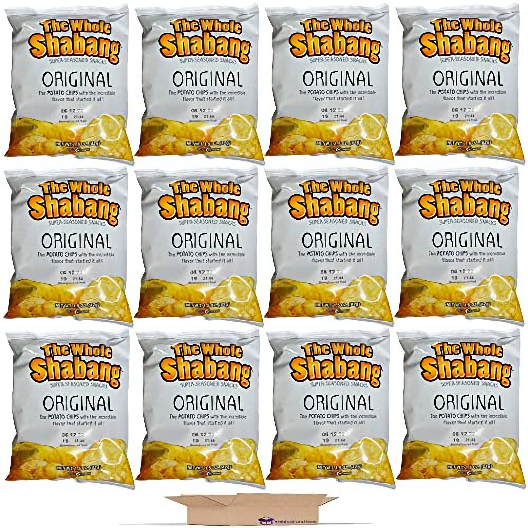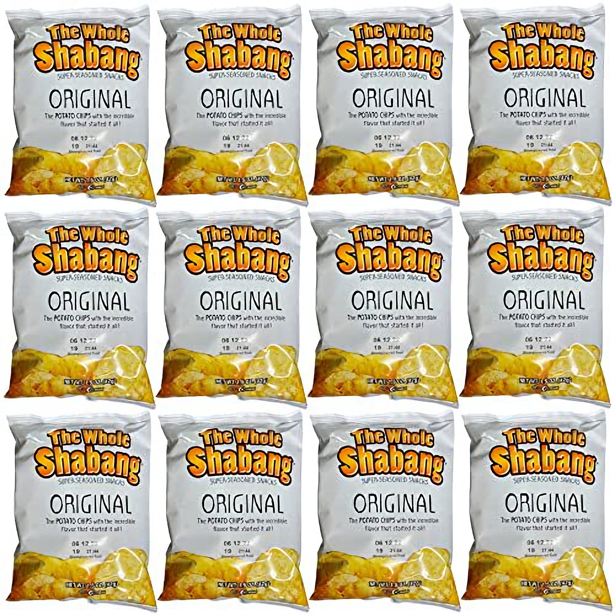 Contains 12 bags of Single Serve 1.5 ounce Moon Lodge The Whole Shabang Original Potato Chips.