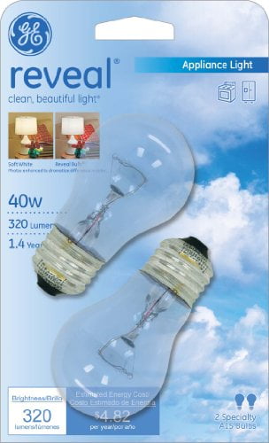 GE Lighting 48706 40-Watt Reveal A15 Appliance Bulb, 2-Card