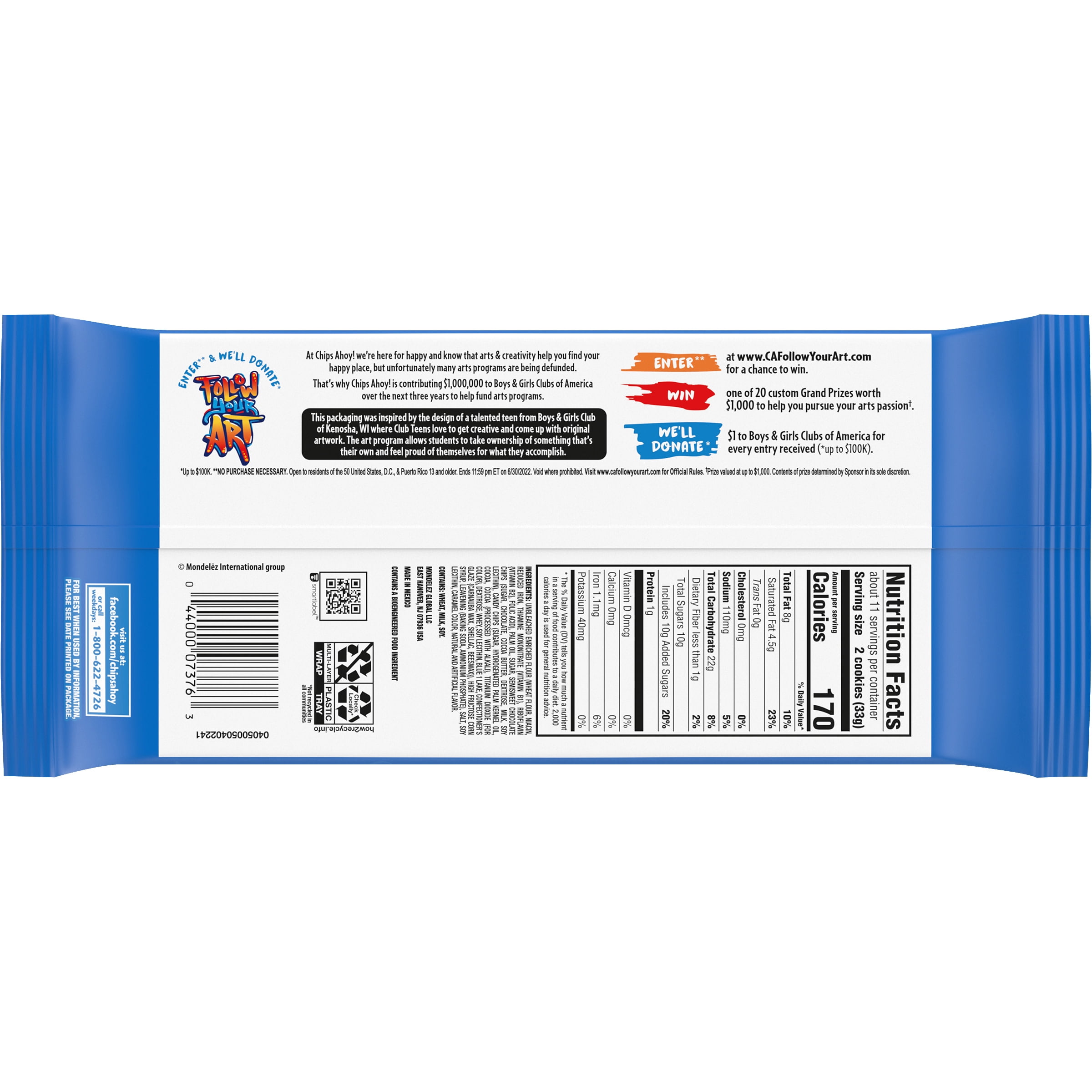 - One 12.4 oz pack of CHIPS AHOY! Blue Candy Blast Chocolate Chip Cookies, Boys & Girls Club Follow Your Art Limited Edition