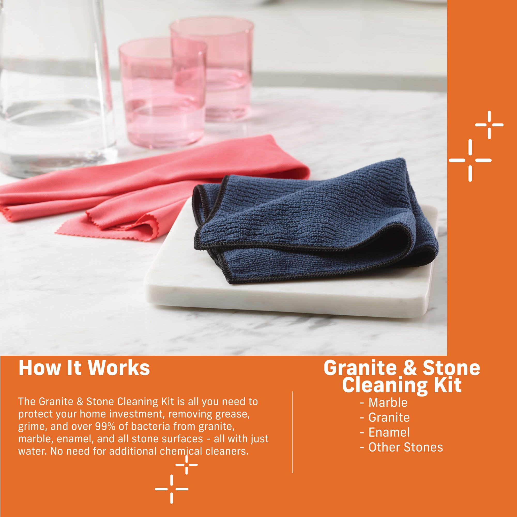E-Cloth Granite & Stone Cleaning Kit, Premium Microfiber Cleaning Cloth, 2 Cloth Set