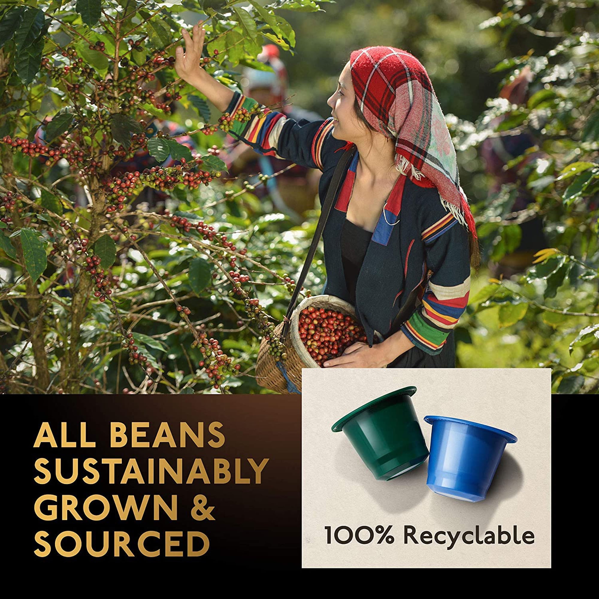 Discover top-shelf espresso at a great price! This incredible variety pack includes 60 Gourmet Espresso Capsules, 10 each of six different coffees ranging from light Delicato and Pursimo to medium Ricco and Intelligente to dark roast Maestro and Gentleman. It’s simply the best way to discover your favorite flavor or satisfy the tastes of the entire family. We take pride in producing high-quality premium coffee pods that are specially sealed for freshness and are designed to work in all Original Line Nespresso machines. Each newly designed capsule is 100 percent recyclable and packaged with zero-waste. Rosso Caffe supports local farmers by sourcing sustainably produced beans from the best coffee regions. You’ve never tasted espresso like this before: it’s deliciously bold, fresh, and completely safe. The finest espresso at an even finer price!