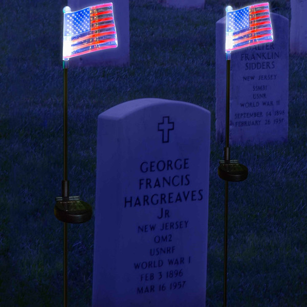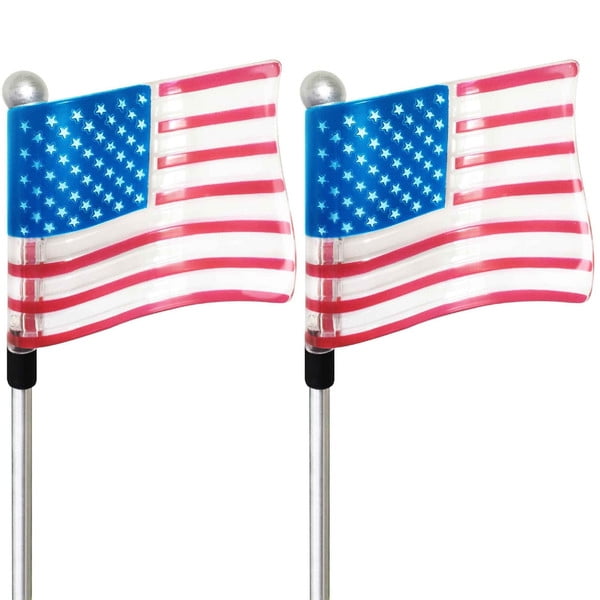 - Includes 2 Solar Powered U.S. Flag LED Garden Stakes
